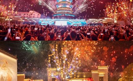 Q:婺女洲跨年有哪些演出? 零点烟花秀、篝火狂欢、星火映鱼、跨年音乐会、快闪秀场、《疯狂的2066》、《遇见婺源》实景演出…这几场王牌演出不看你的婺女洲跨年就不算完整!更有火壶、打铁花、仙侠巡游、皮影戏、《遇见天佑》情景剧等近百场非遗民俗和街区演艺全天候轮番上演,看过才算真的不白来!